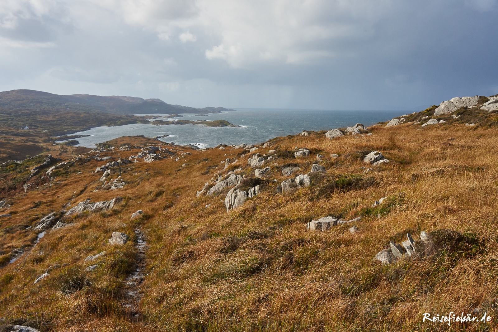 Unberührt und verlassen: Auf schmalen Straßen ohne Gegenverkehr und auf einsamen Wegen fanden wir ein Irland, in dem die Zeit stehen geblieben scheint. Unbedingt anschauen: Hag of Beara, ein sagenumwobener Stein, an dem heute kleine Schätze auf Entdecker warten.